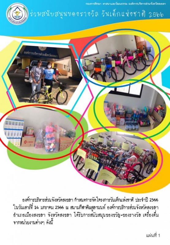 องค์การบริหารส่วนจังหวัดสงขลา กำหนดการจัดโครงการวันเด็กแห่งชาติ ประจำปี 2566 ในวันเสาร์ที่ 14 มกราคม 2566 ณ สนามกีฬาติณสูลานนท์ องค์การบริการส่วนจังหวัดสงขลา อำเภอเมืองสงขลา จังหวัดสงขลา ได้รับการสนับสนุนของขวัญ-ของรางวัล เครื่องดื่ม จากหน่วยงานต่างๆ ดังนี้