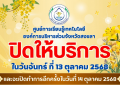 ปิดให้บริการ ในวันจันทร์ ที่ 13 ตุลาคม 2568